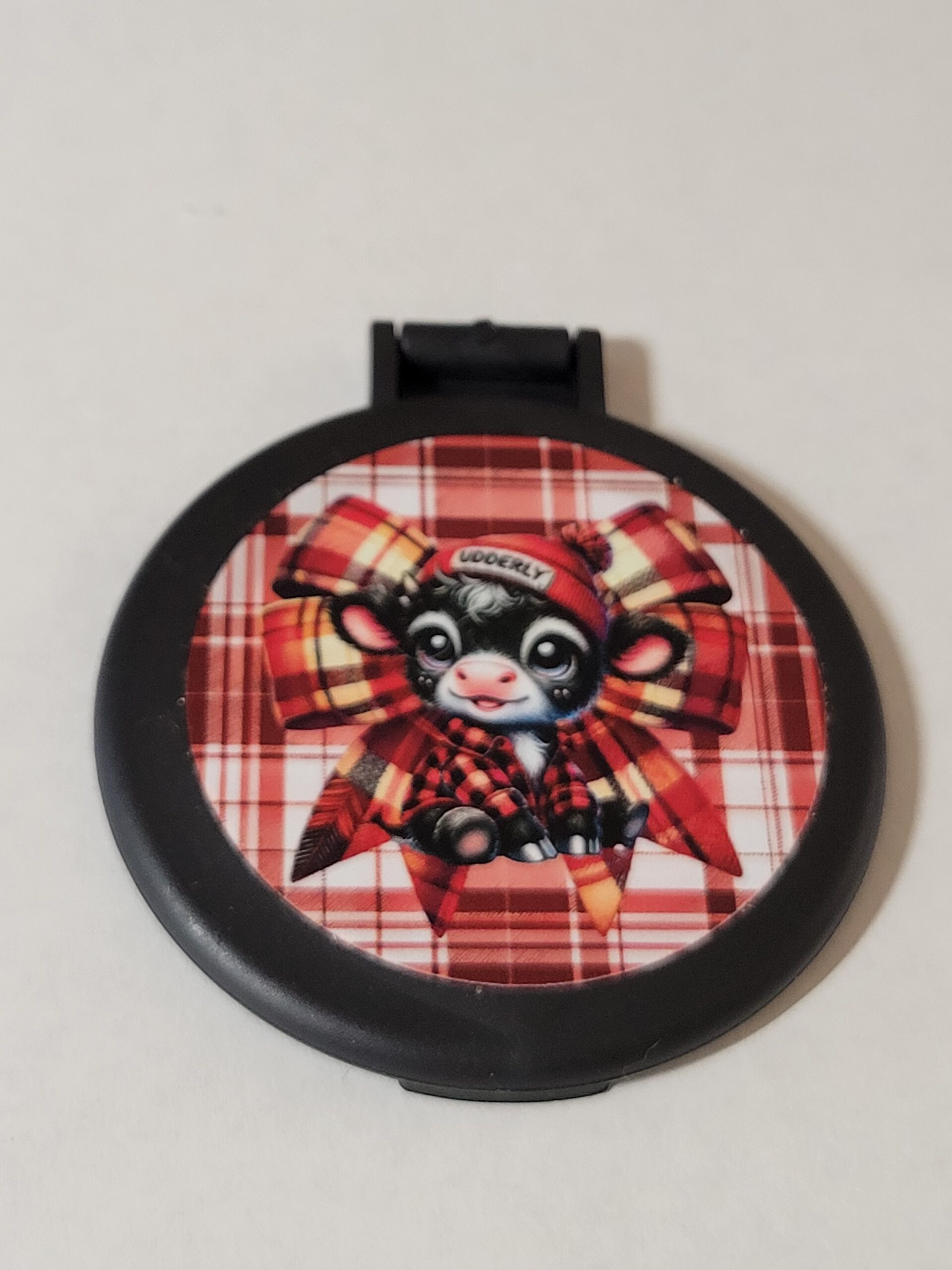 Black Compact Mirror with Black Cow