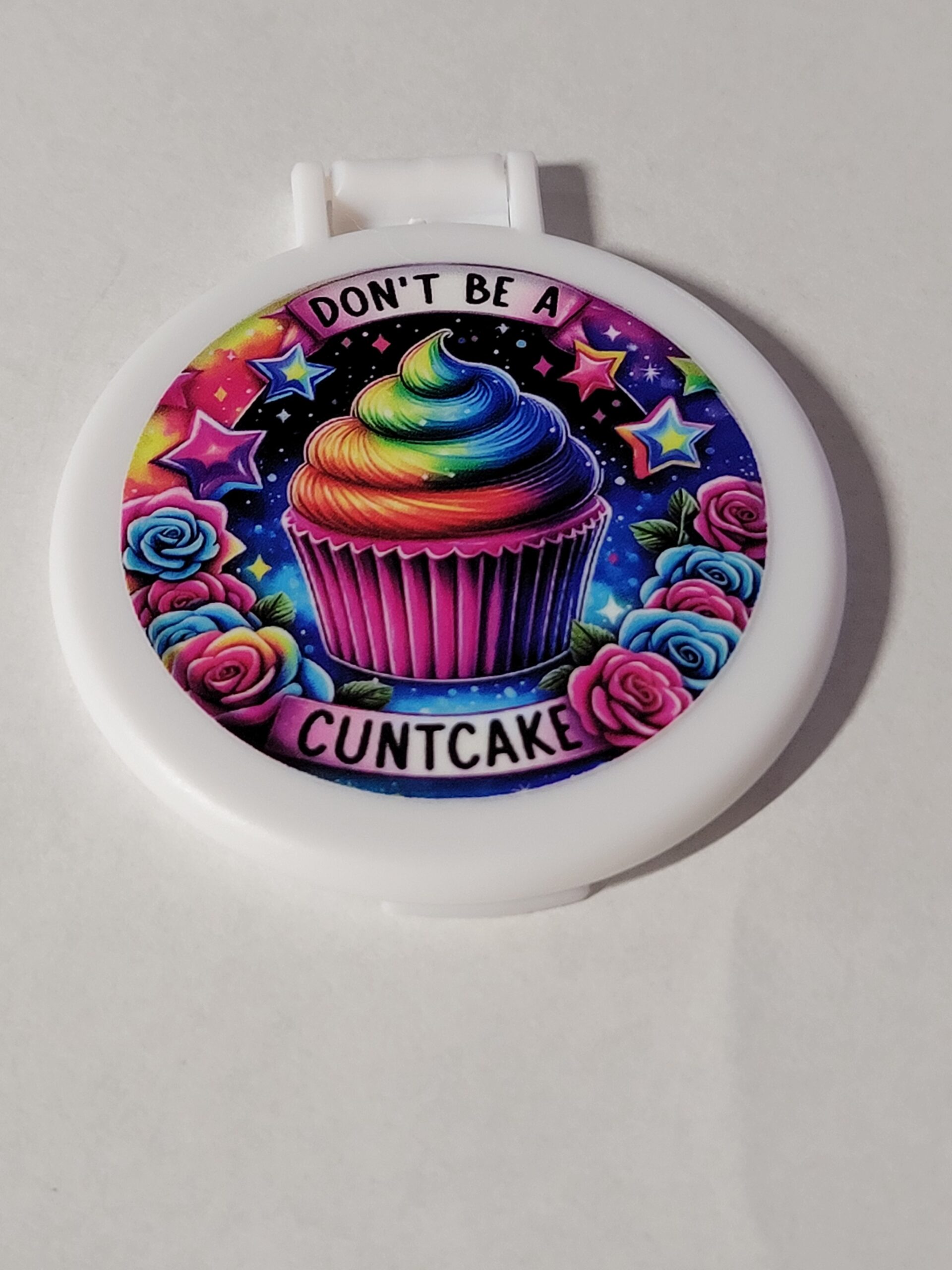 Black Compact Mirror with Cupcake