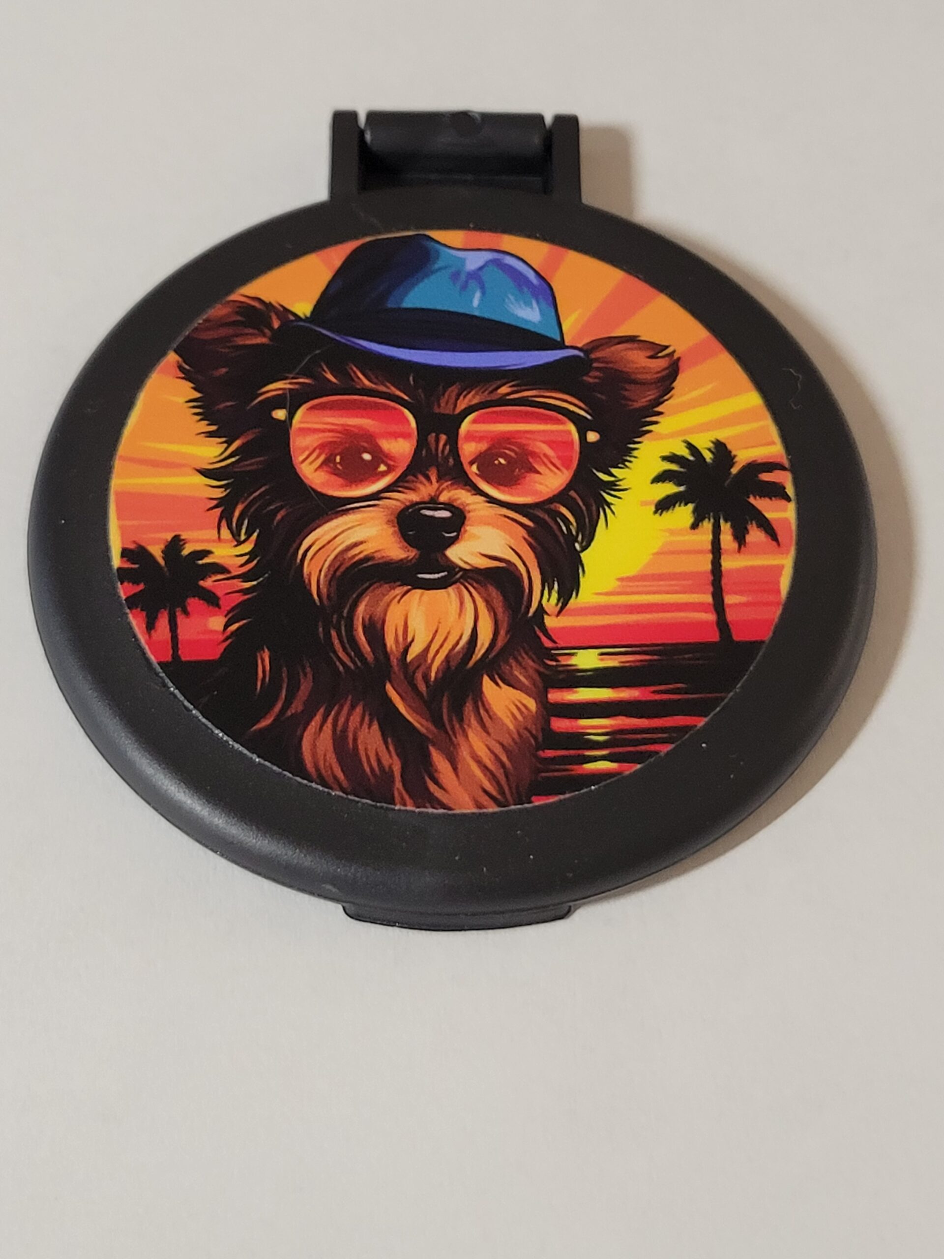 Black Compact Mirror with Dog