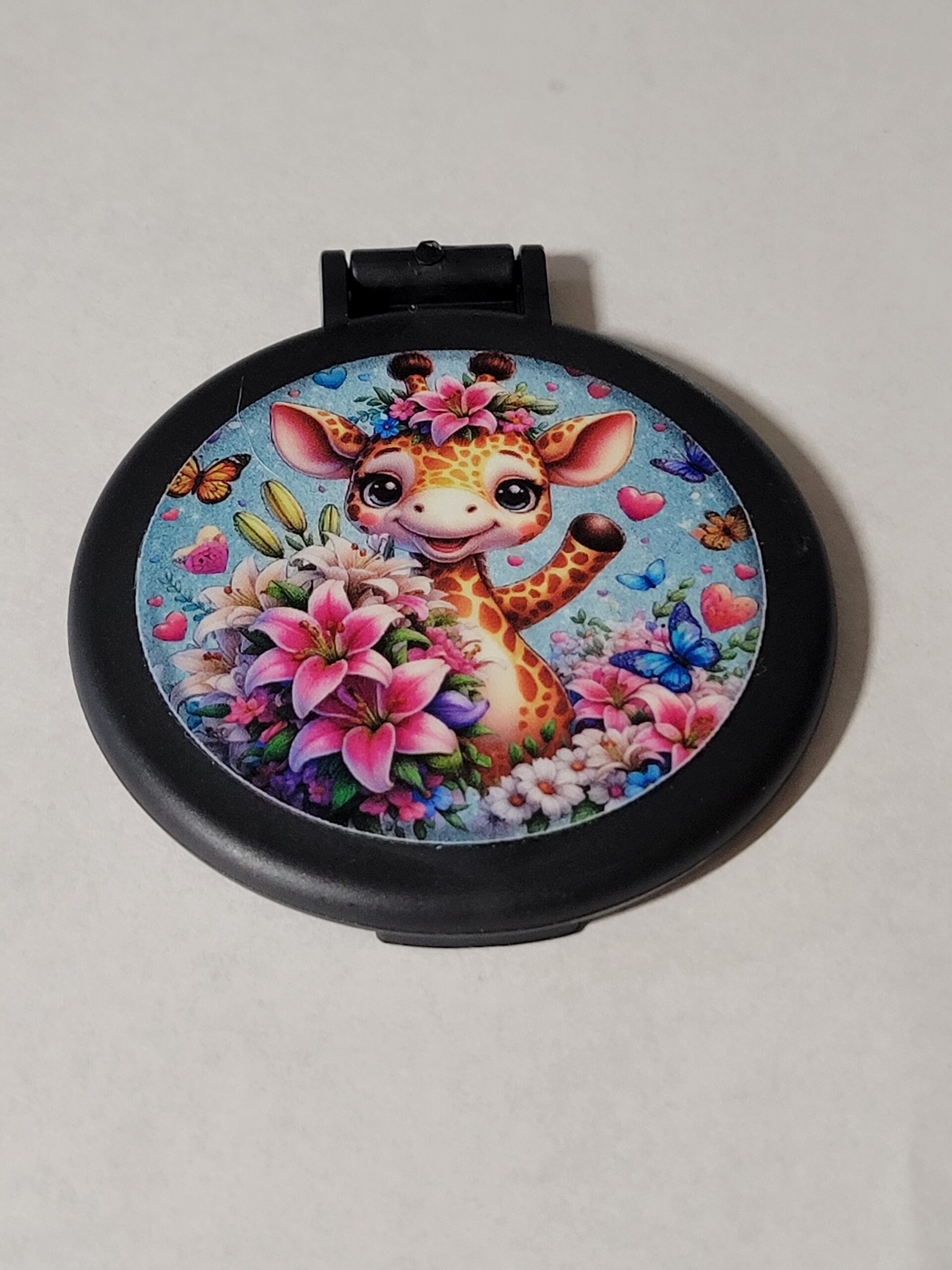 Black Compact Mirror with Giraffe