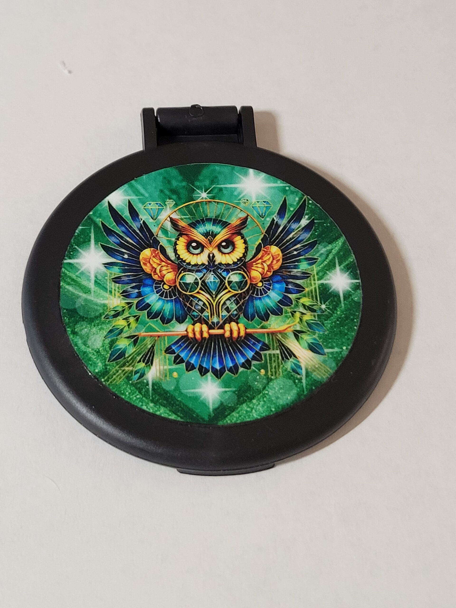 Black Compact Mirror with Owl