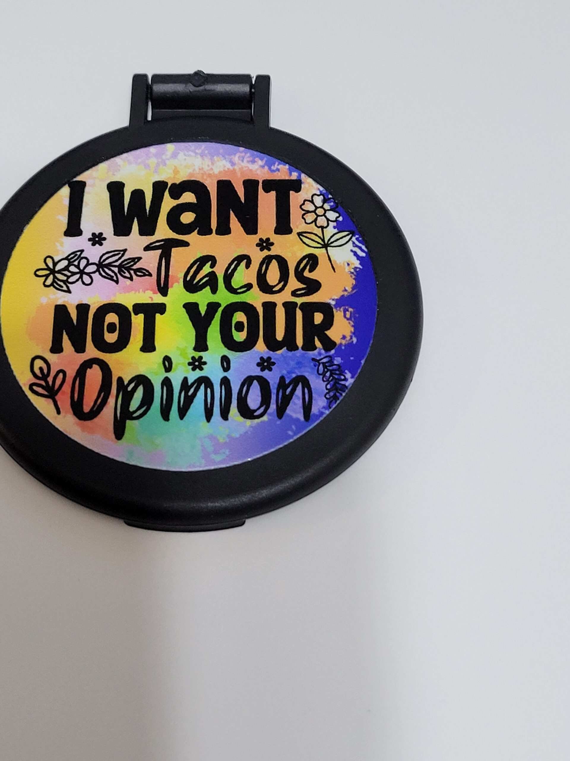 Be the first to review “Burgundy Compact Mirror with “I want tacos””