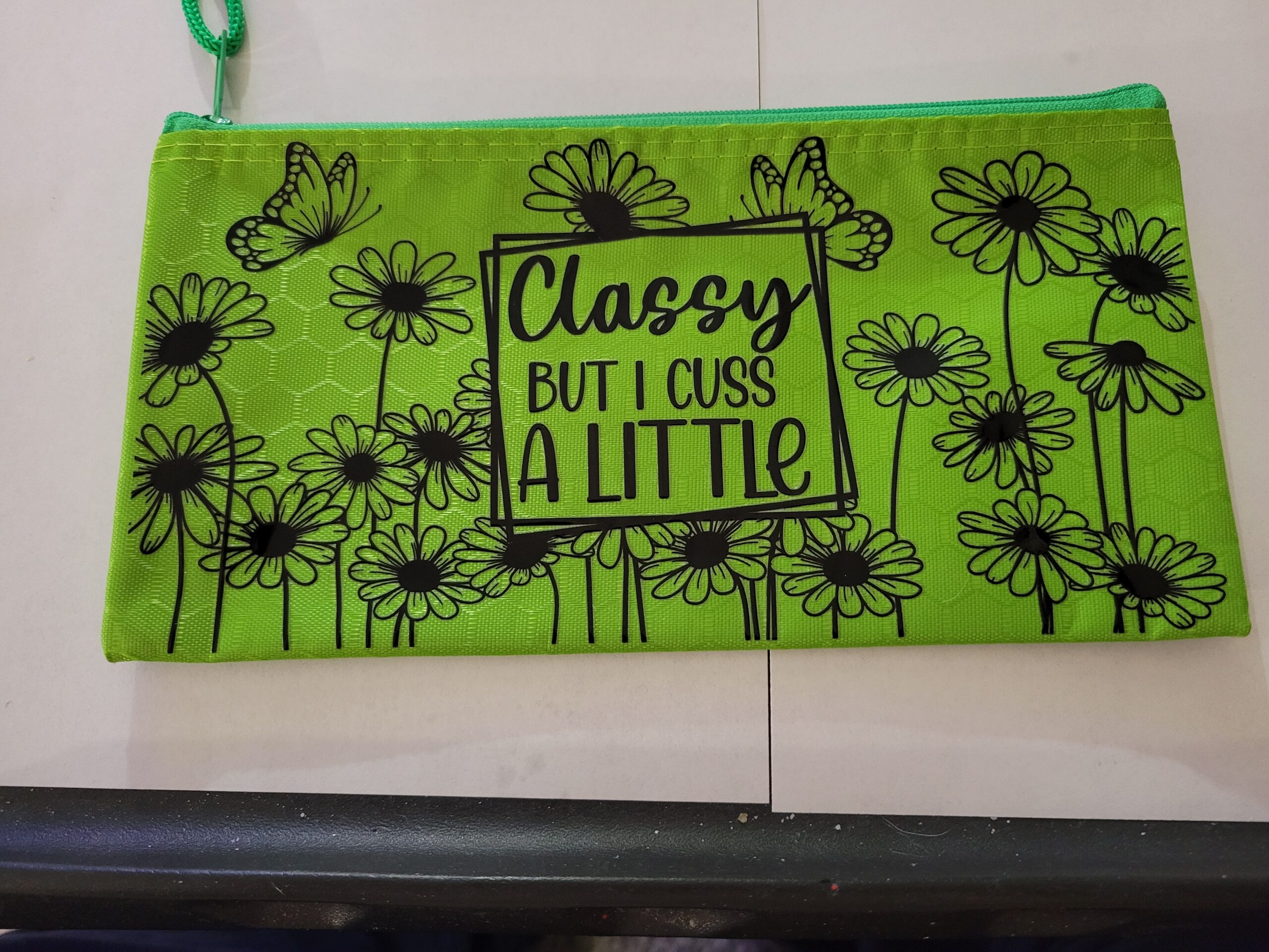 Green Bag with Butterflies and Flowers