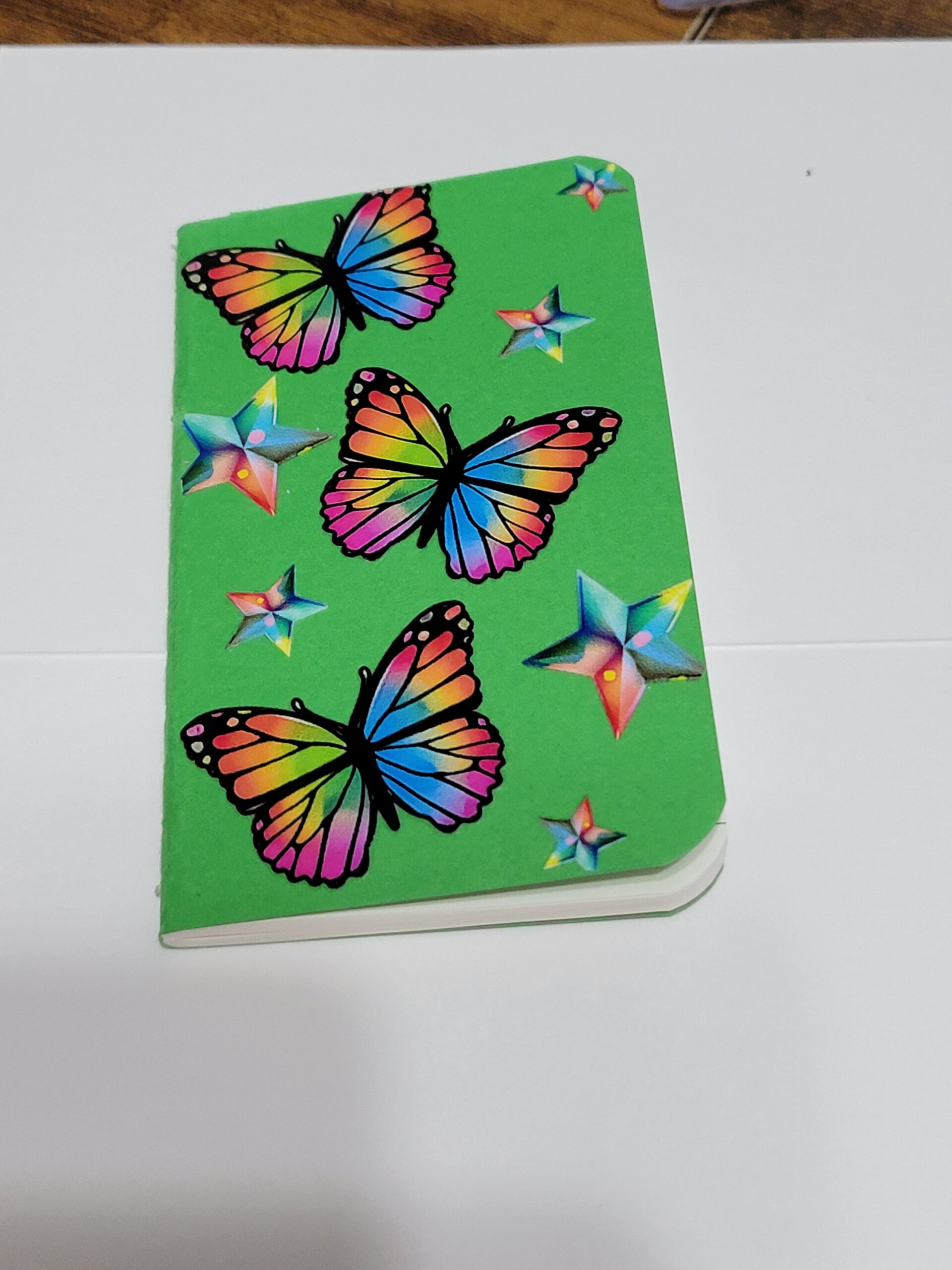 Green Tiny Notebook with Rainbow Butterflies