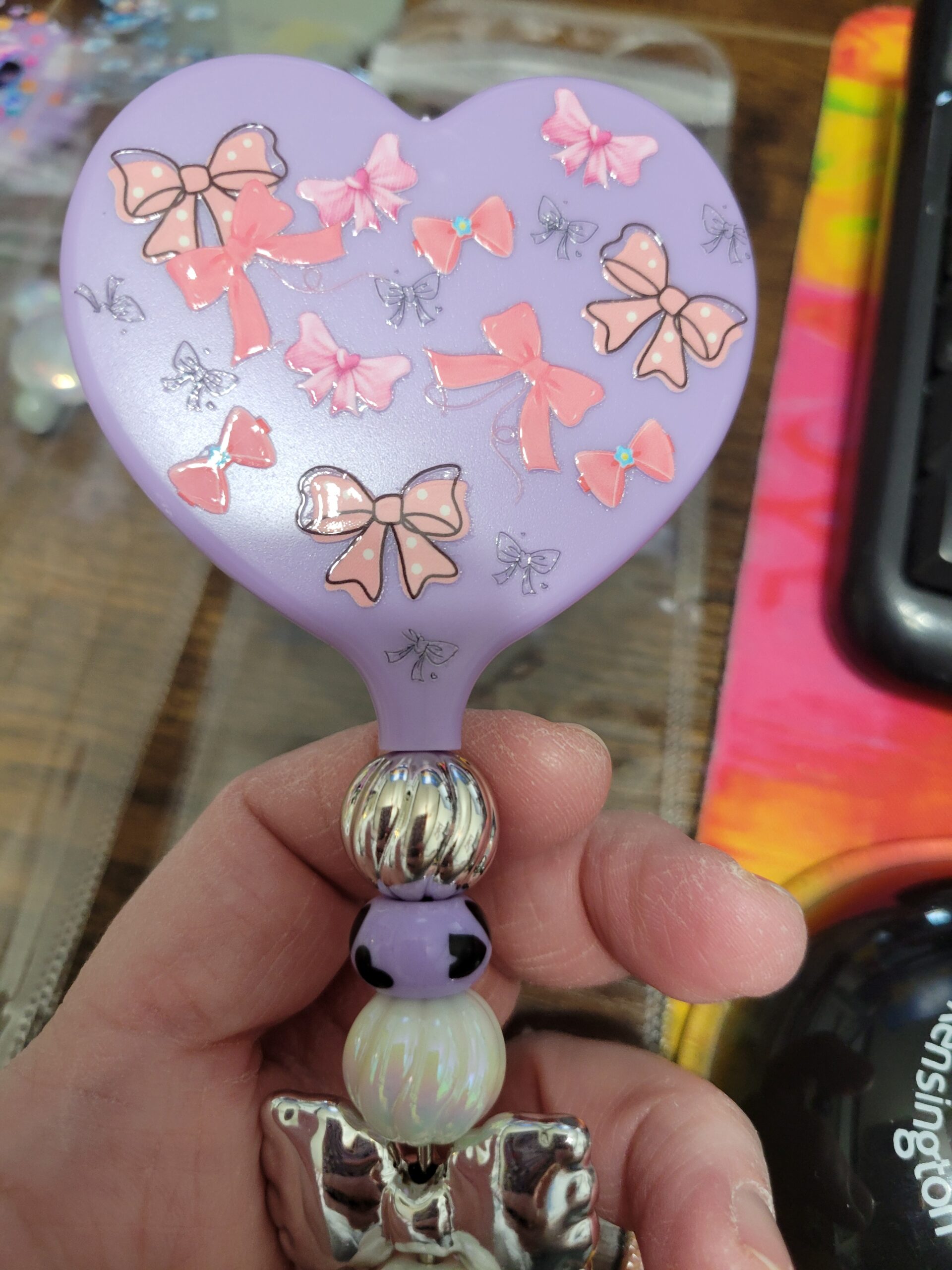 Be the first to review “Purple Handheld Heart Mirror with Pink Bows”