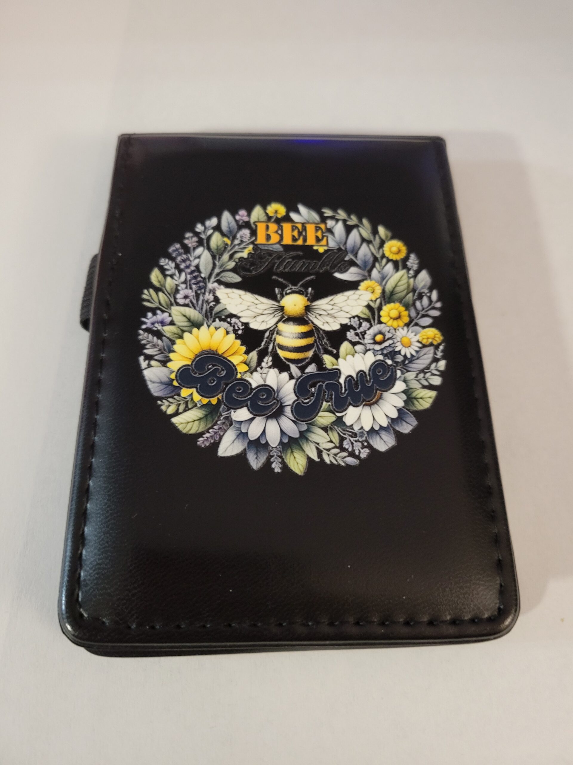 Small Black Leather Notebook with Bee and Silver Pen