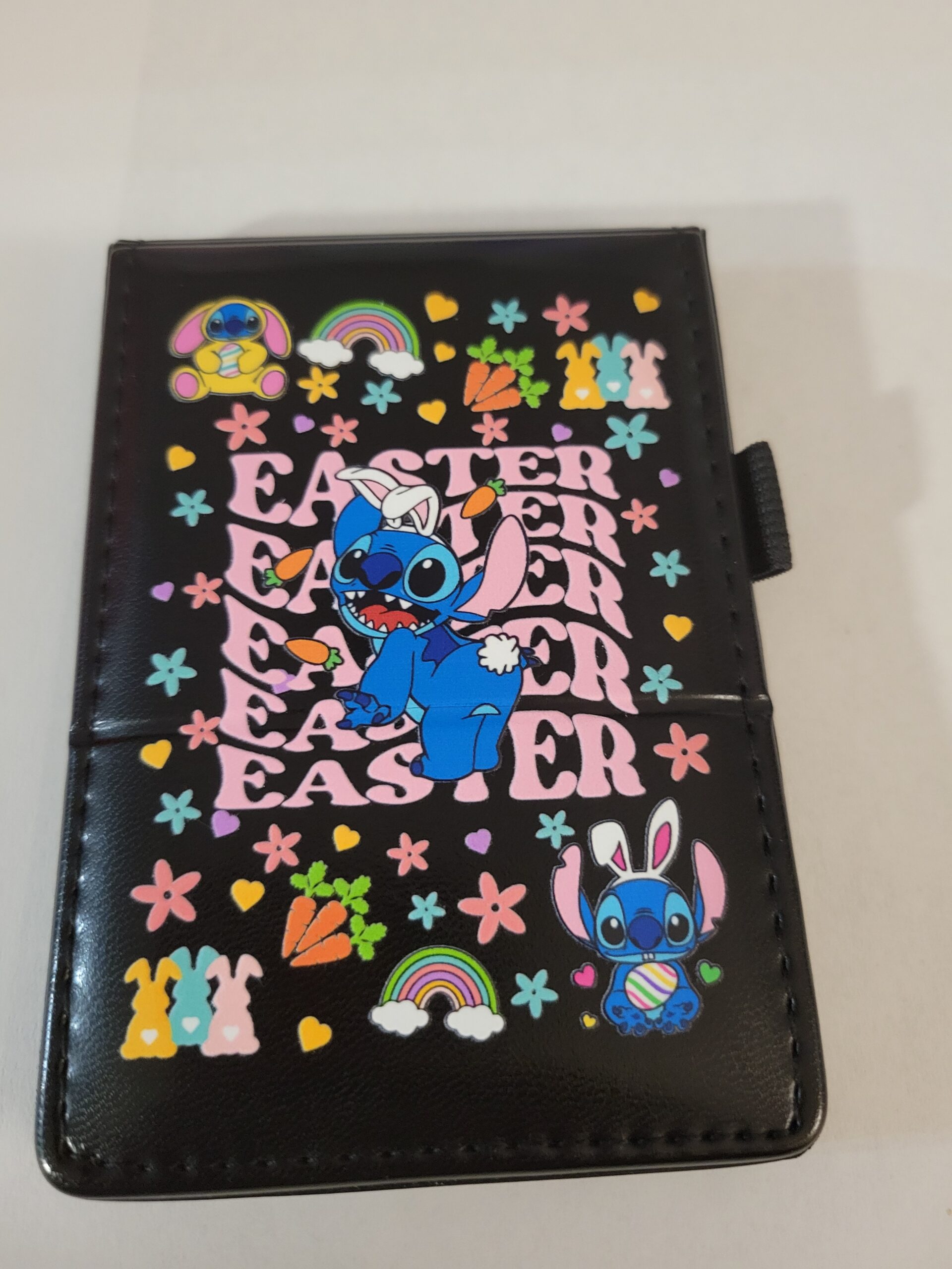 Small Black Leather Notebook with Easter Stitch and Silver Pen