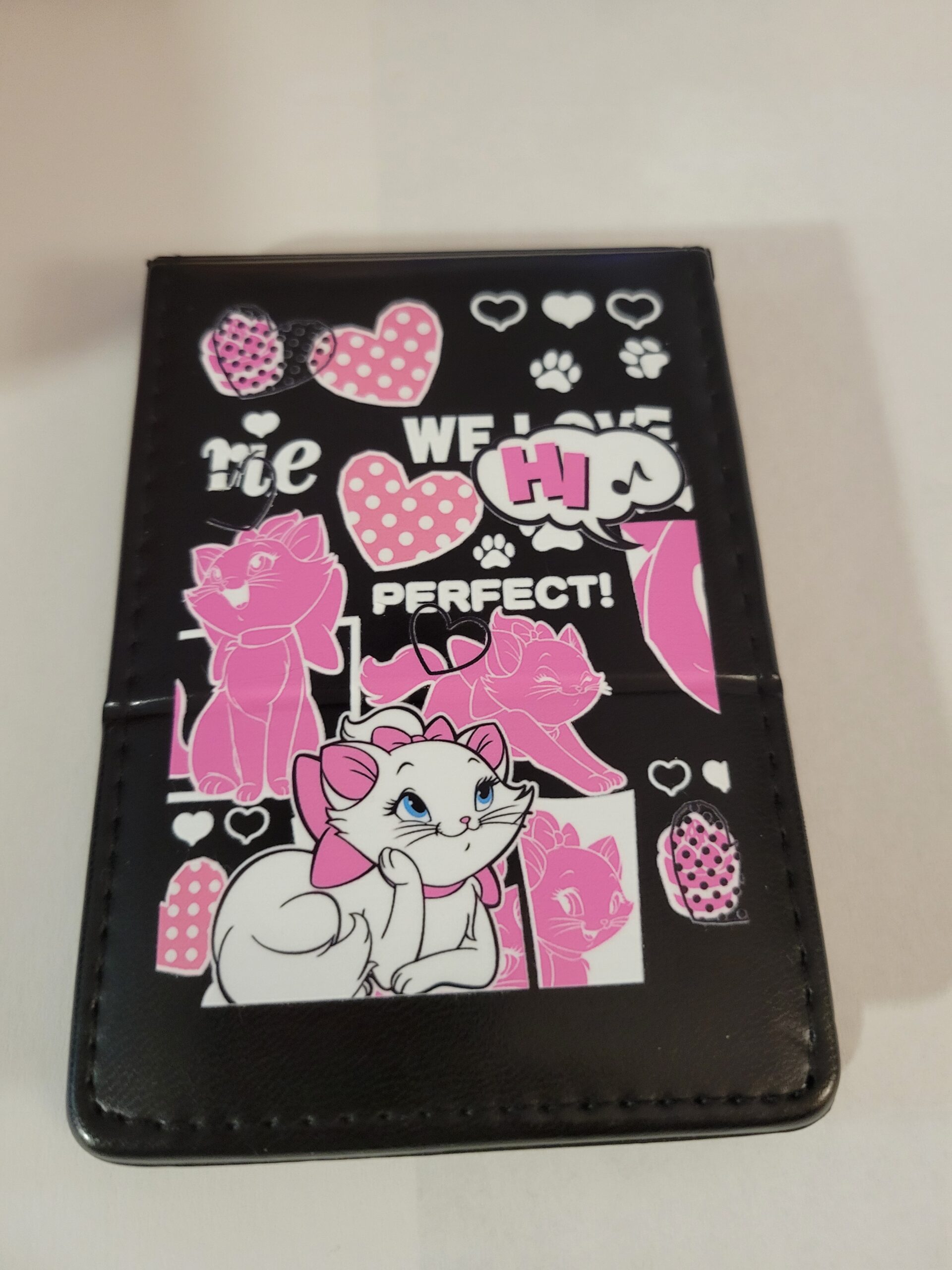 Small Black Leather Notebook with Marie Cat and Silver Pen (no lines)
