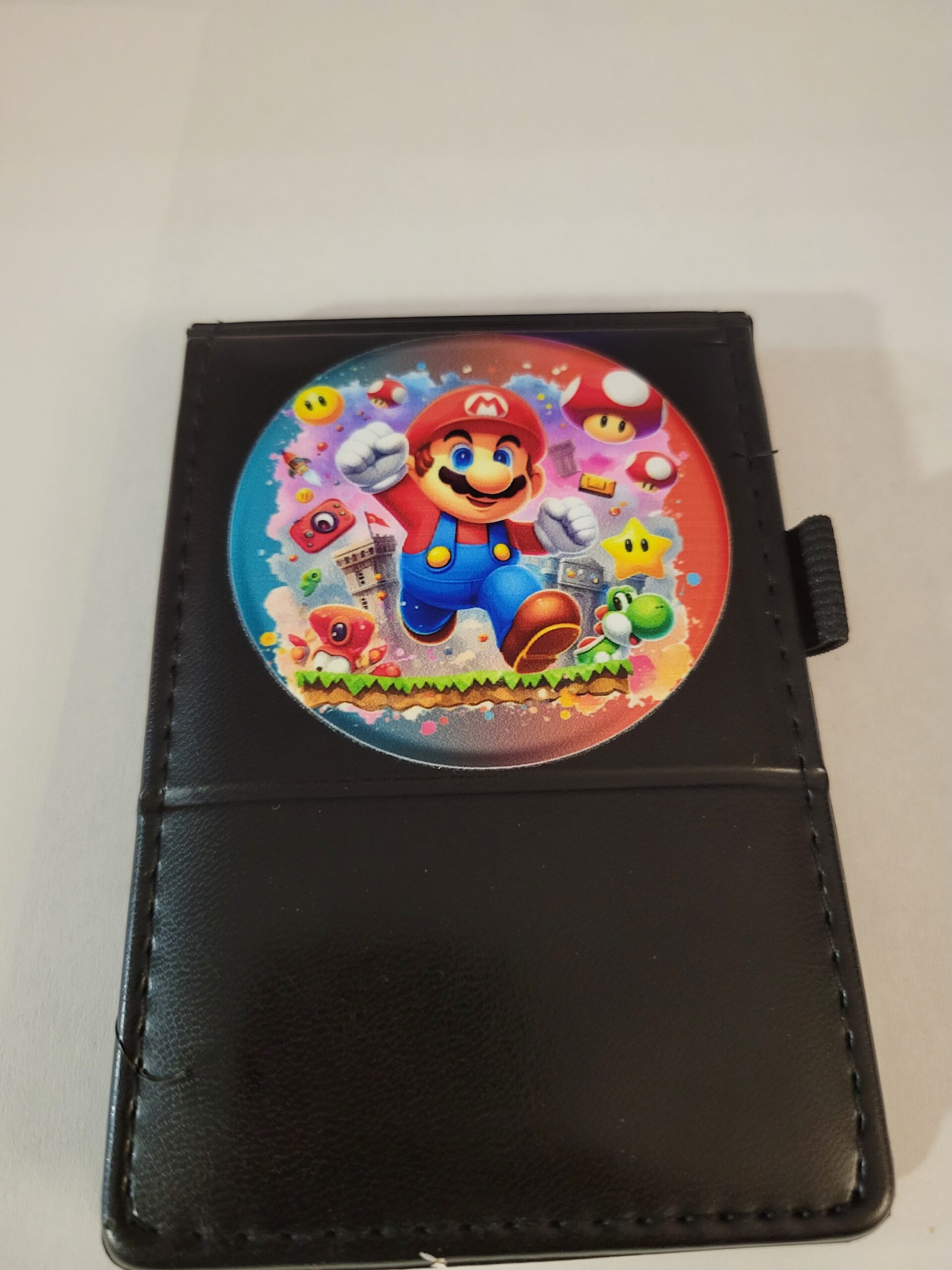 Small Black Leather Notebook with Mario and Silver Pen