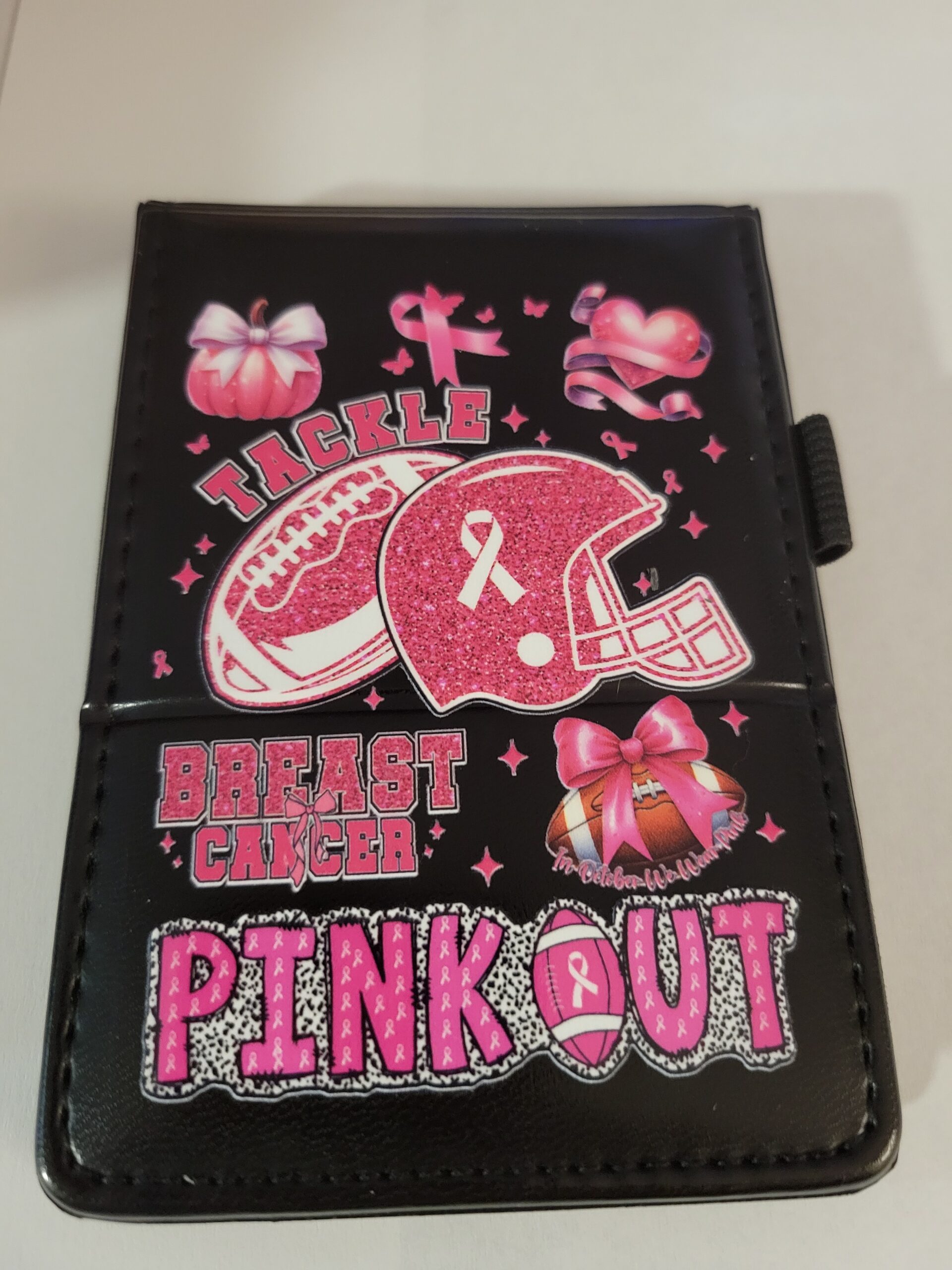 Small Black Leather Notebook with Pink Ribbon and Silver Pen (no lines)