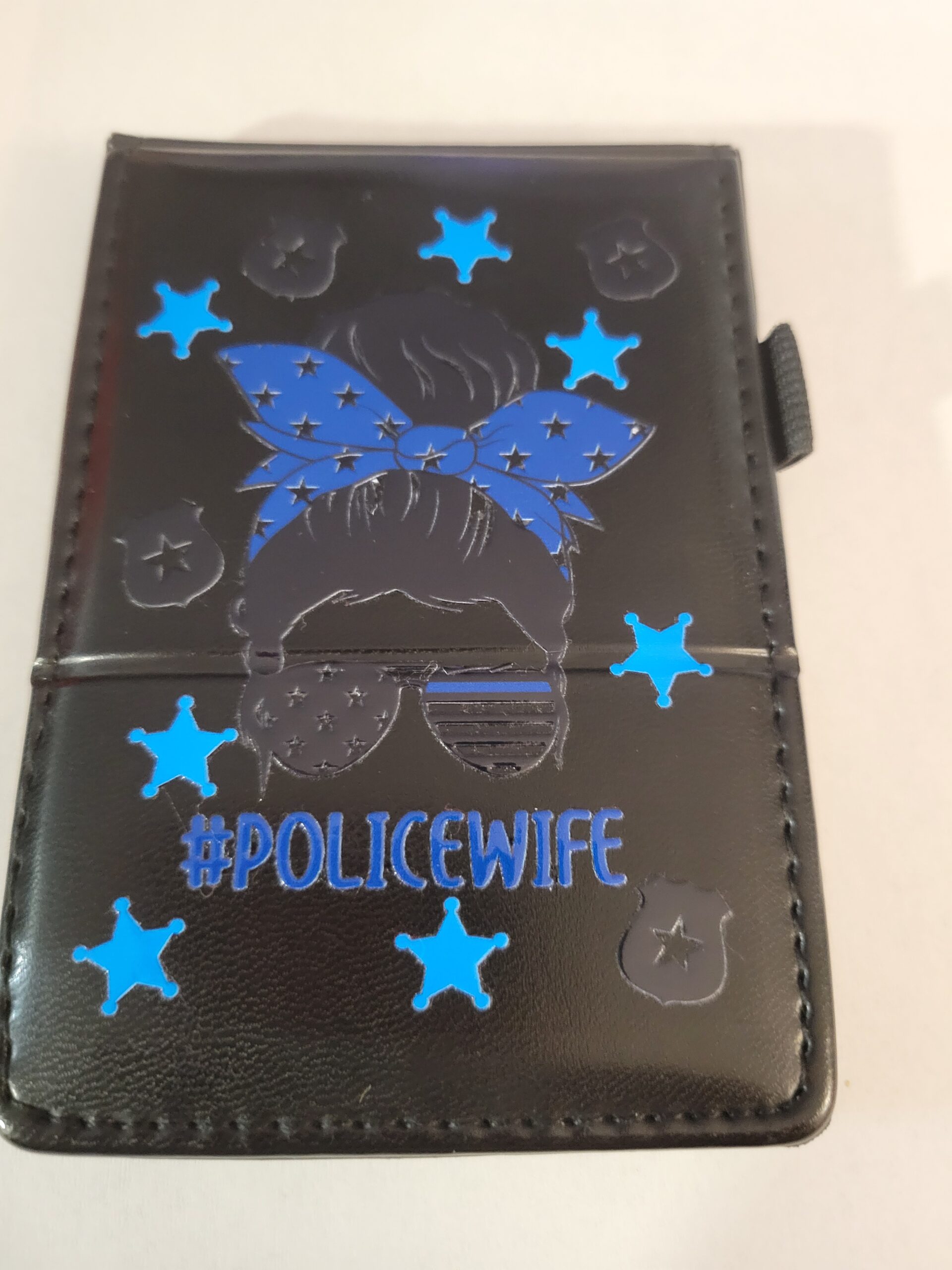 Small Black Leather Notebook with Police Wife and Silver Pen