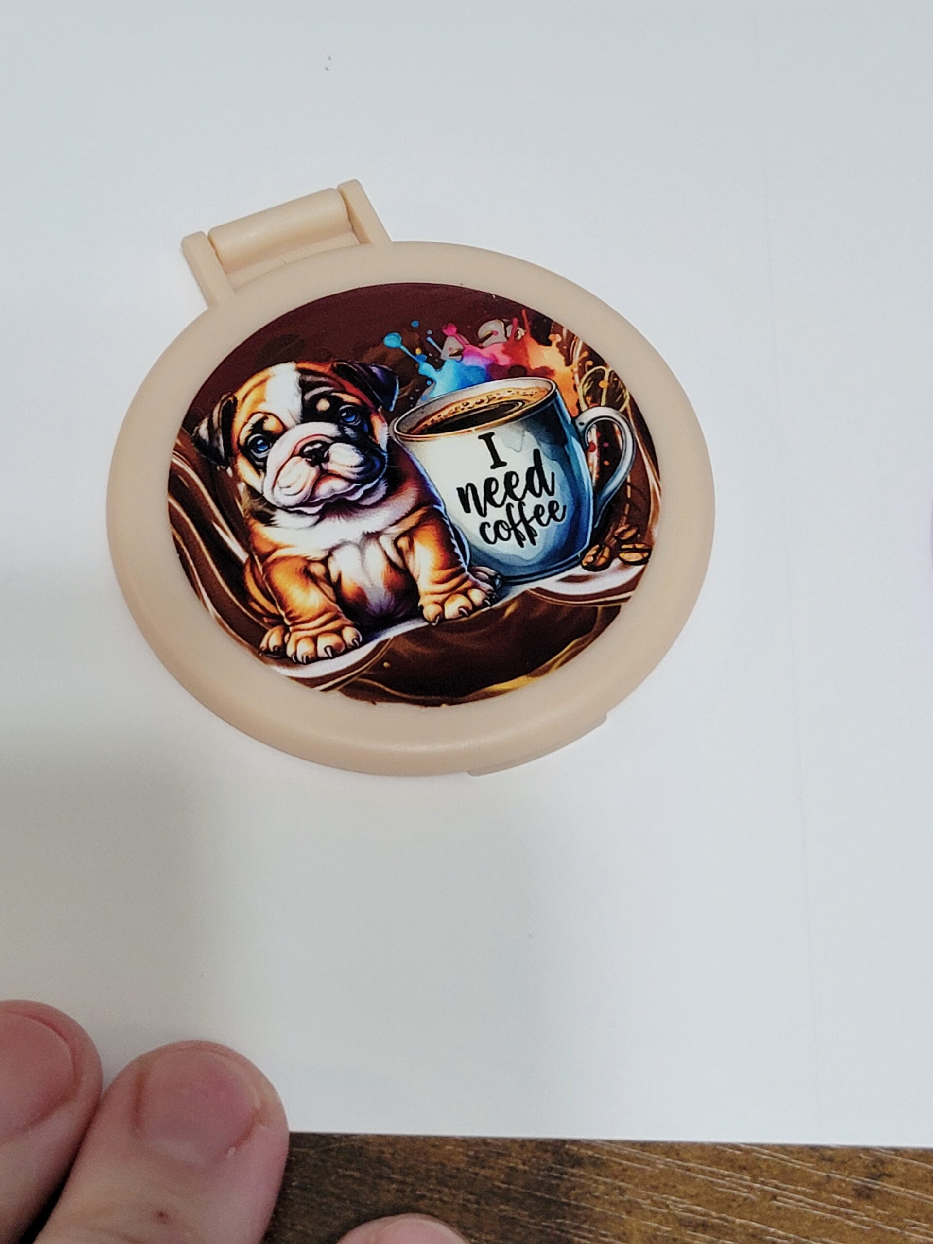 Tan Compact Mirror with Dog