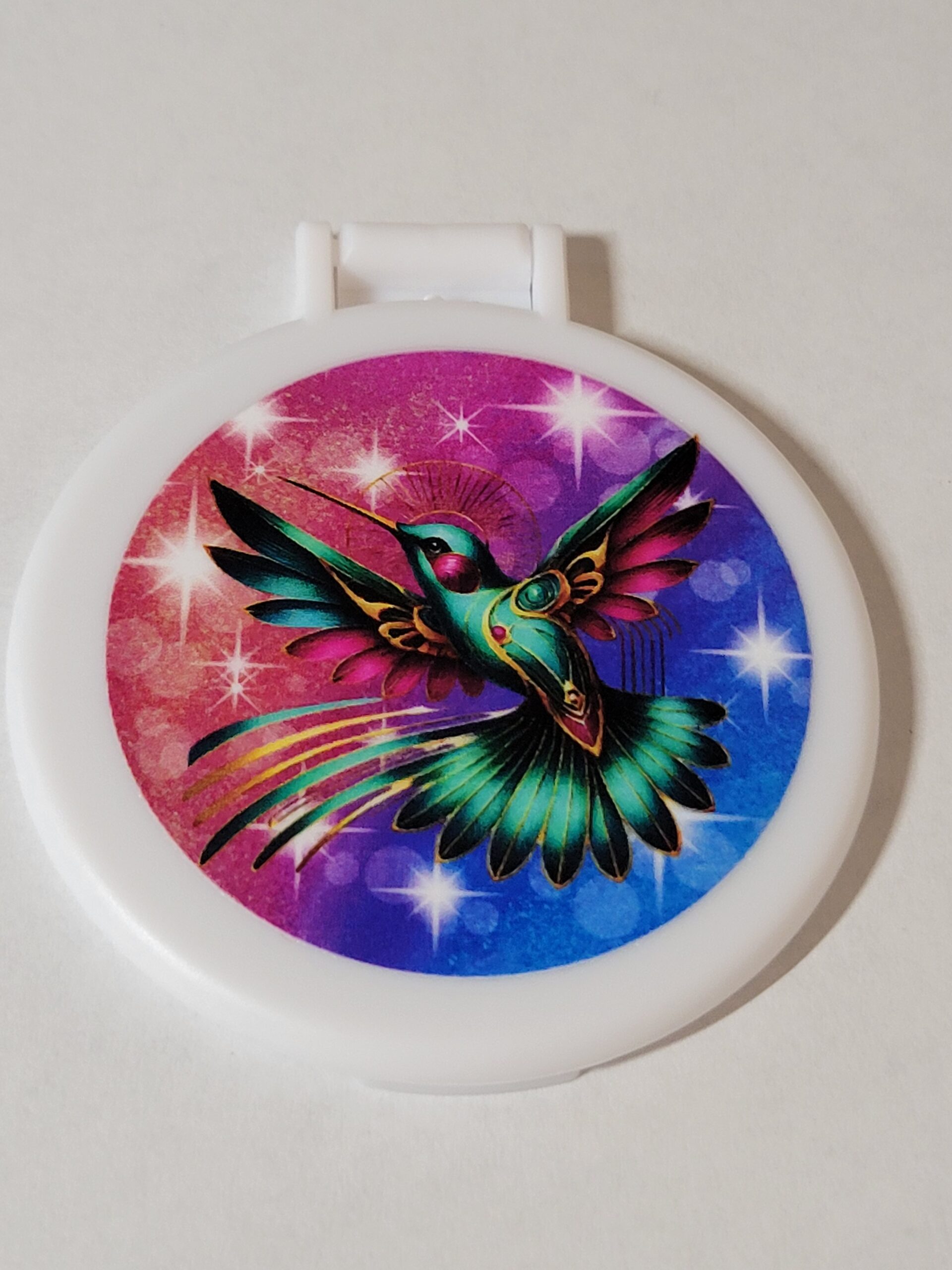 White Compact Mirror with Hummingbird
