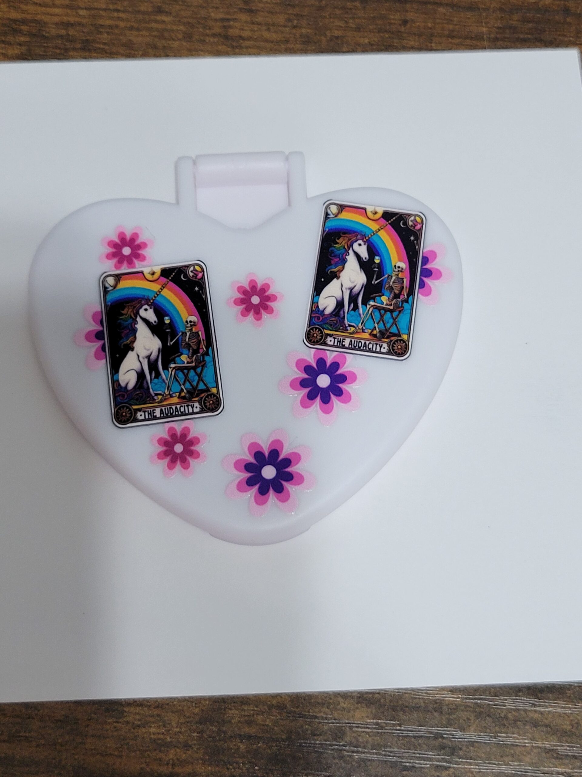White Heart Compact Mirror with Unicorn