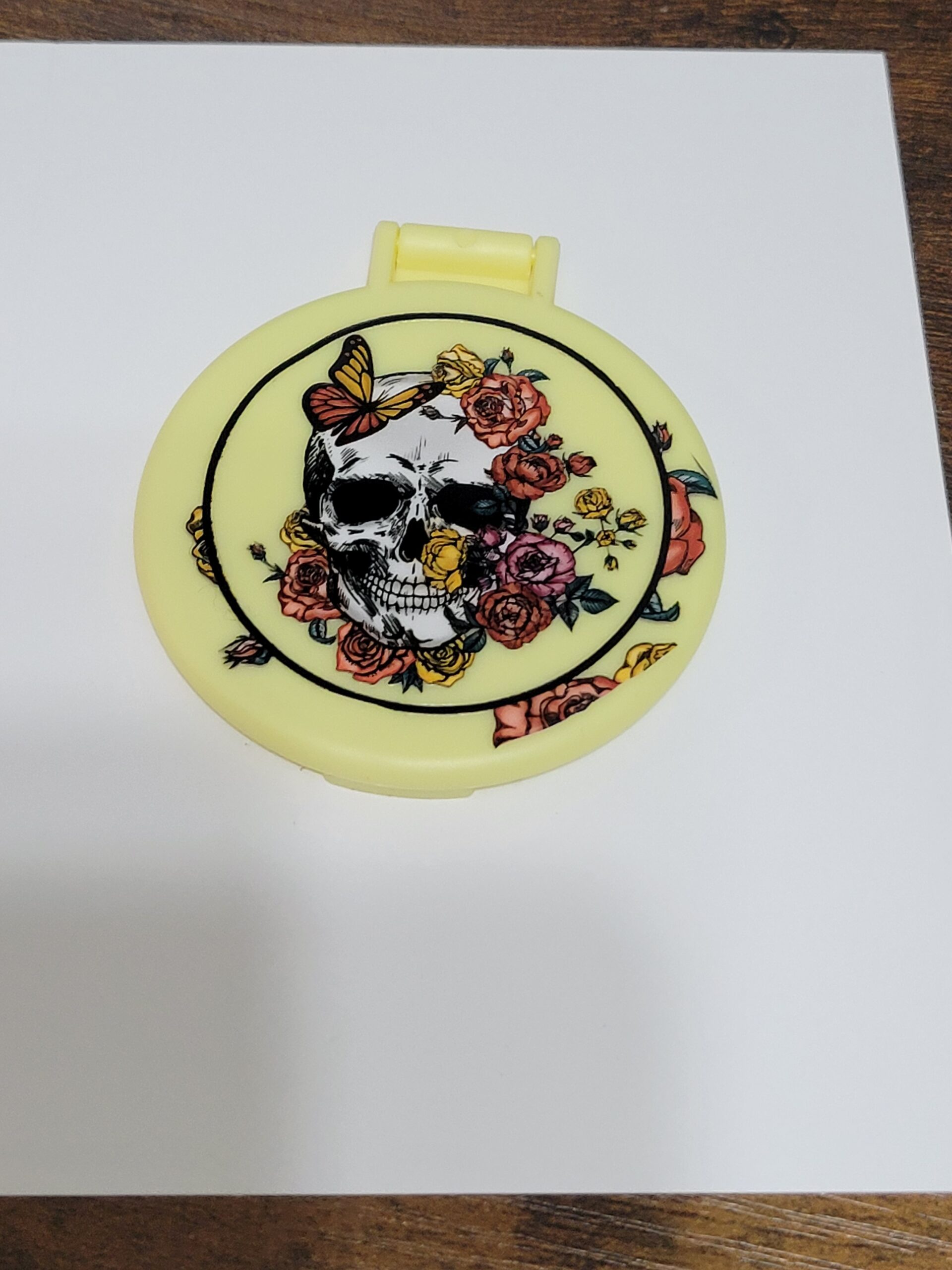 Yellow Compact Mirror with Skull and Flowers
